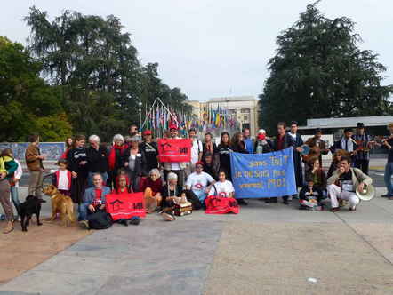Fill out the formMarcia degli Abitanti Giornata Mondiale Sfratti Zero, davanti al Palazzo delle Nazioni Unite (Ginevra, 1 ottobre 2011).